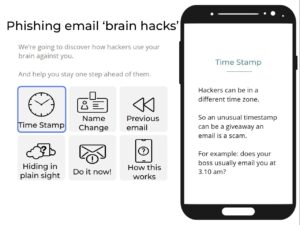Three short videos (animated and live-action) show staff how to recognise phishing tactics.